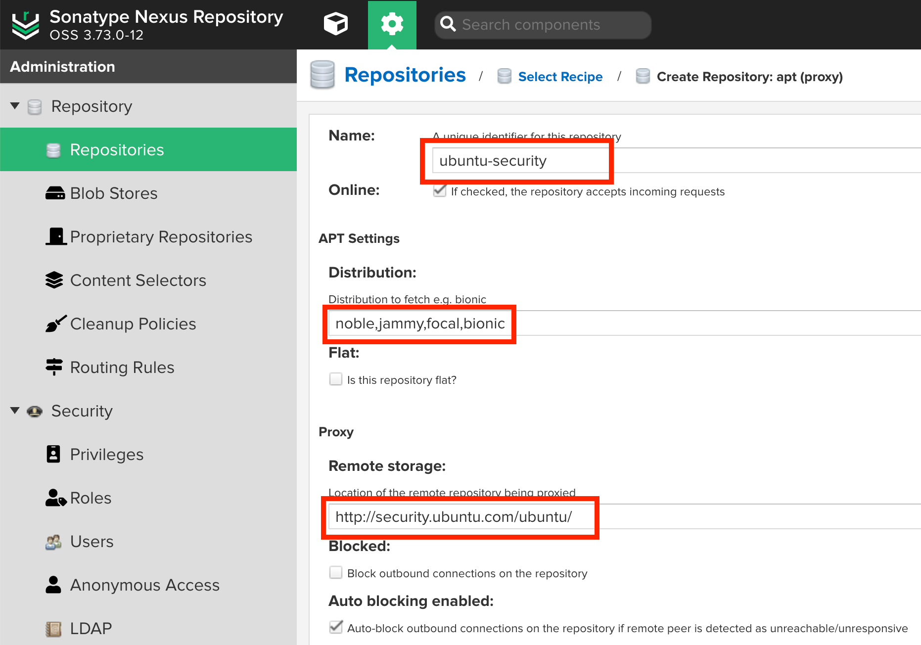 Nexus Repository berfungsi sebagai caching proxy yang menyimpan paket-paket dari sumber resmi Ubuntu seperti archive.ubuntu.com